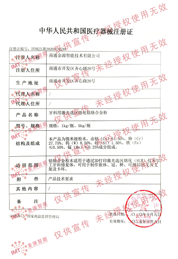 Registration Certificate for Medical Device of the People's Republic of China