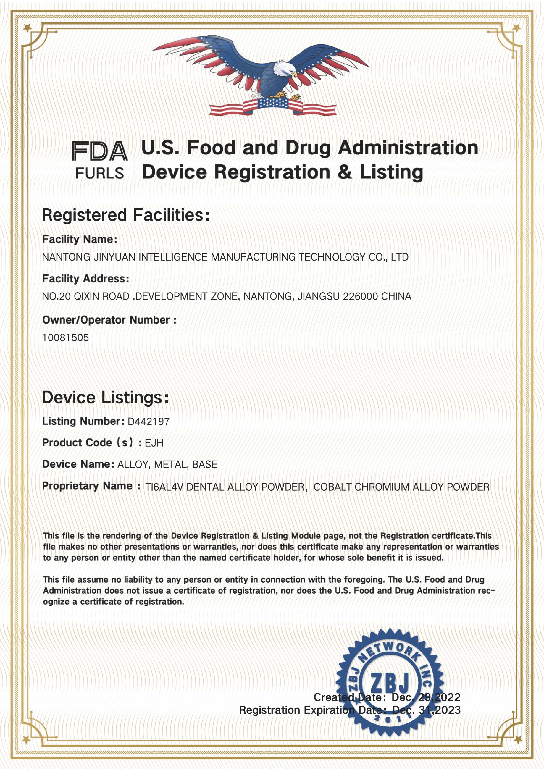 美國食品藥品監督管理局認證